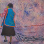 Er steht auch für die Haltung, mit der Gloria Gans in der Welt unterwegs ist. Als Mensch, Malerin und Kunstpädagogin. Wir lernten uns im Turm von St. Clemens in Neuhausen kennen, wo sie als Kunstdozentin der Malakademie des Münchner Bildungswerks arbeitete. Auf dem mit bunten Farbklecksen übersäten Werktisch lag eine Einladung zur Gruppenausstellung mit dem Kolibri-Kunst-Kabinett. Auf dem Flyer ein Paar mit Kind, in einen leeren Raum gestellt. Geflüchtete, auf dem Weg ins Irgendwo. „Wie würde es mir gehen, wenn ich in ein Land käme, das mir völlig fremd ist, wo ich niemanden kenne und die Sprache nicht verstehe?“ Diese Frage treibt die Münchner Künstlerin um.